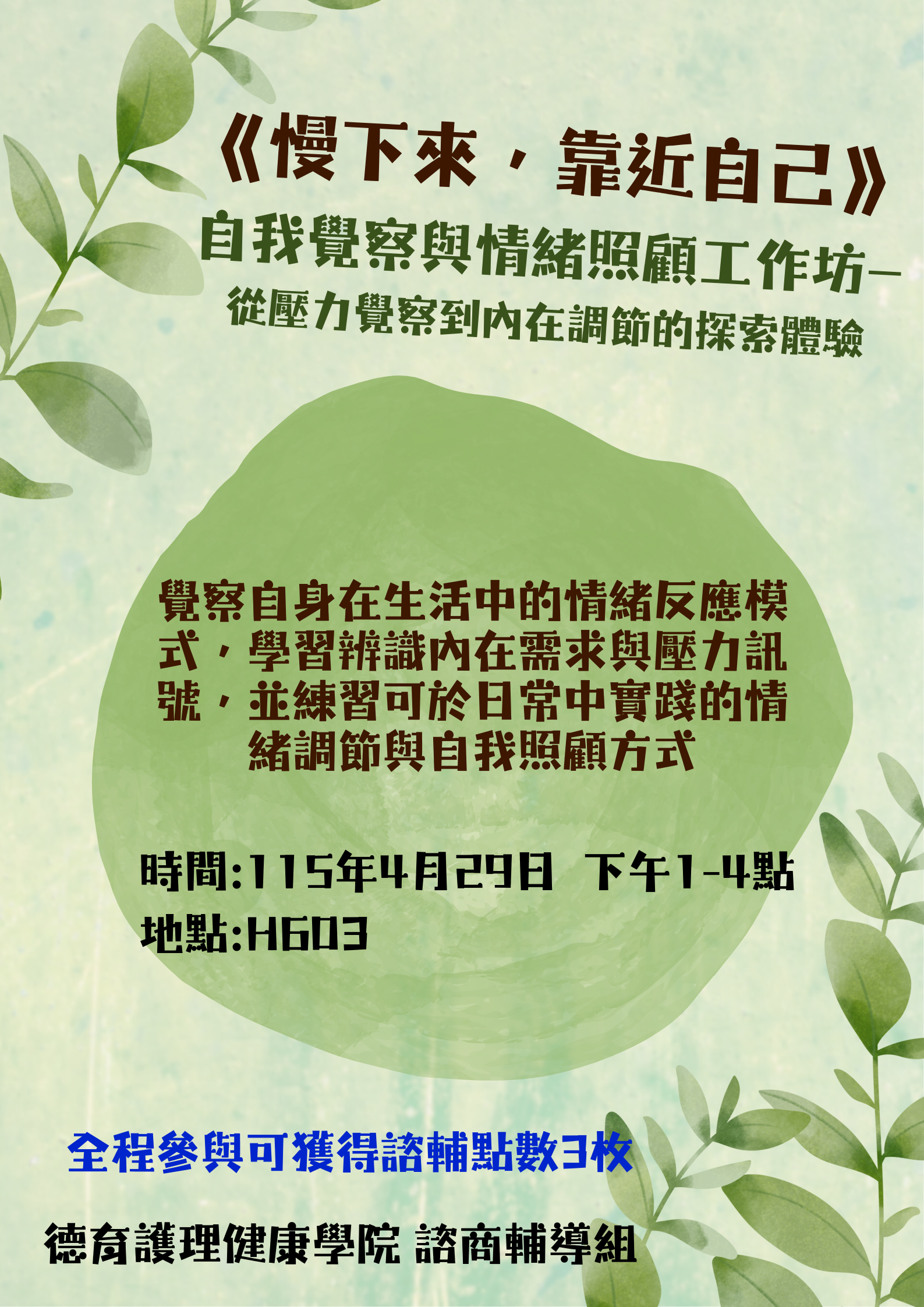 我要報名 心理成長活動《慢下來,靠近自己》:心理健康自我覺察與情緒照顧工作坊—從壓力覺察到內在調節的探索體驗