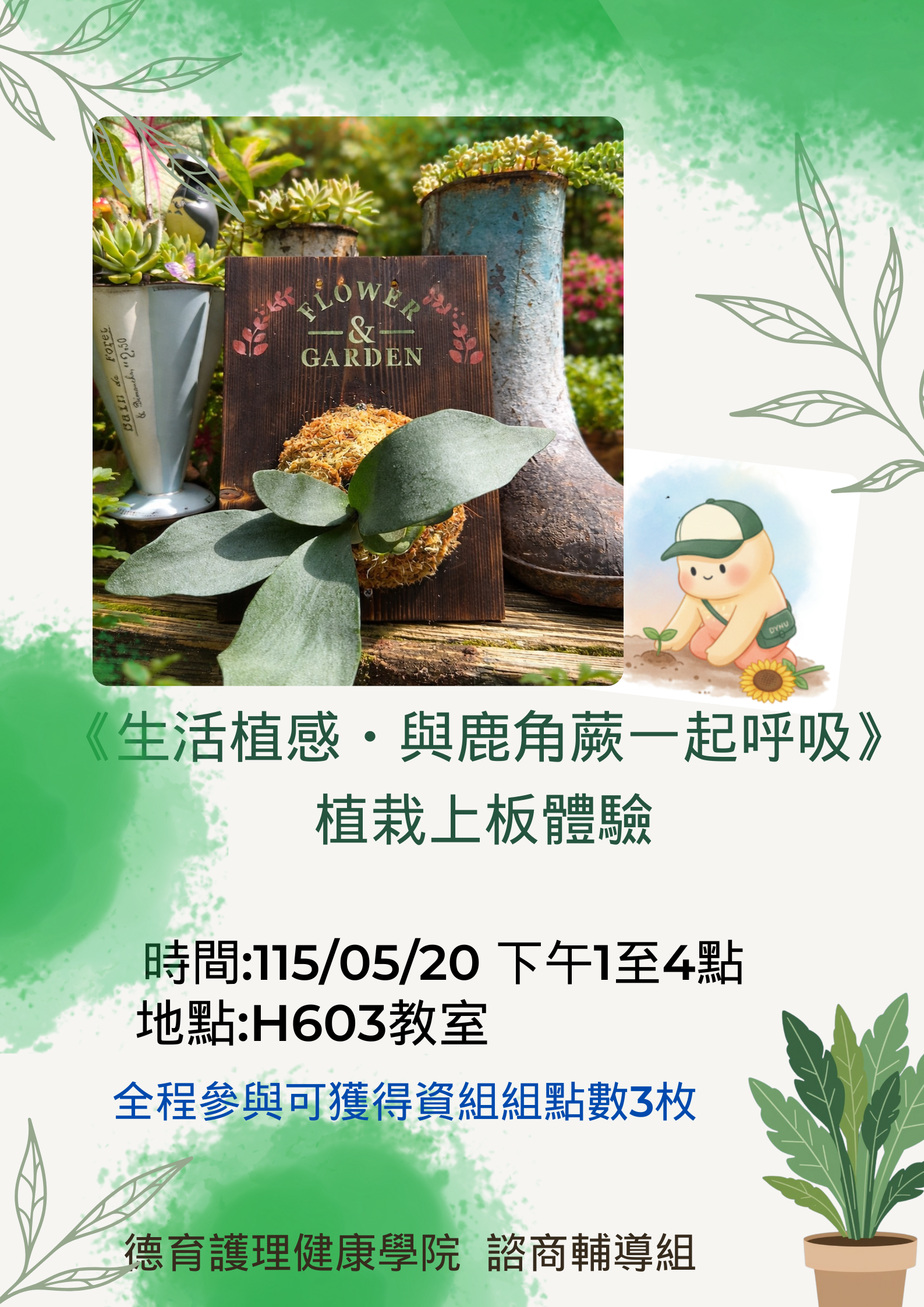 我要報名 心理成長活動《生活植感・與鹿角蕨一起呼吸》植栽上板體驗